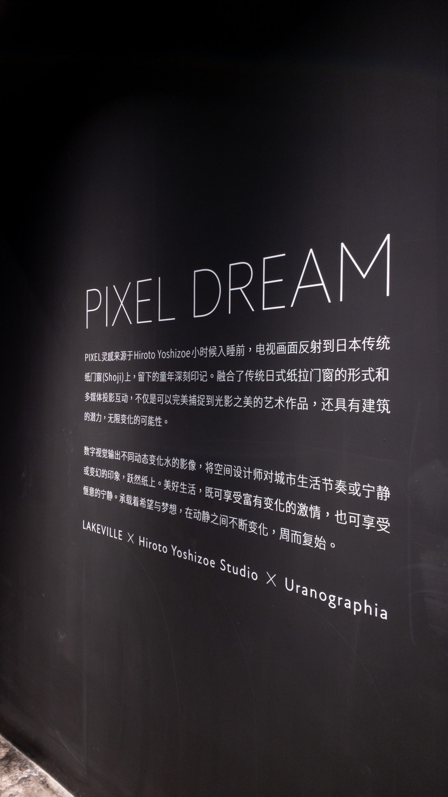 香港・上海の企画会社Sage Houseからの協力依頼を受け、住宅ブランドLakevilleが主催する展覧会「PIXEL DREAM」「鳥鳴澗」の現地マネジメントを、増井辰一郎が務めました。展示作品のモチーフとなったのは、人間の生命活動に欠かせない「水」や「光と影」です。会場の近辺に池が位置していることがインスピレーション源になりました。