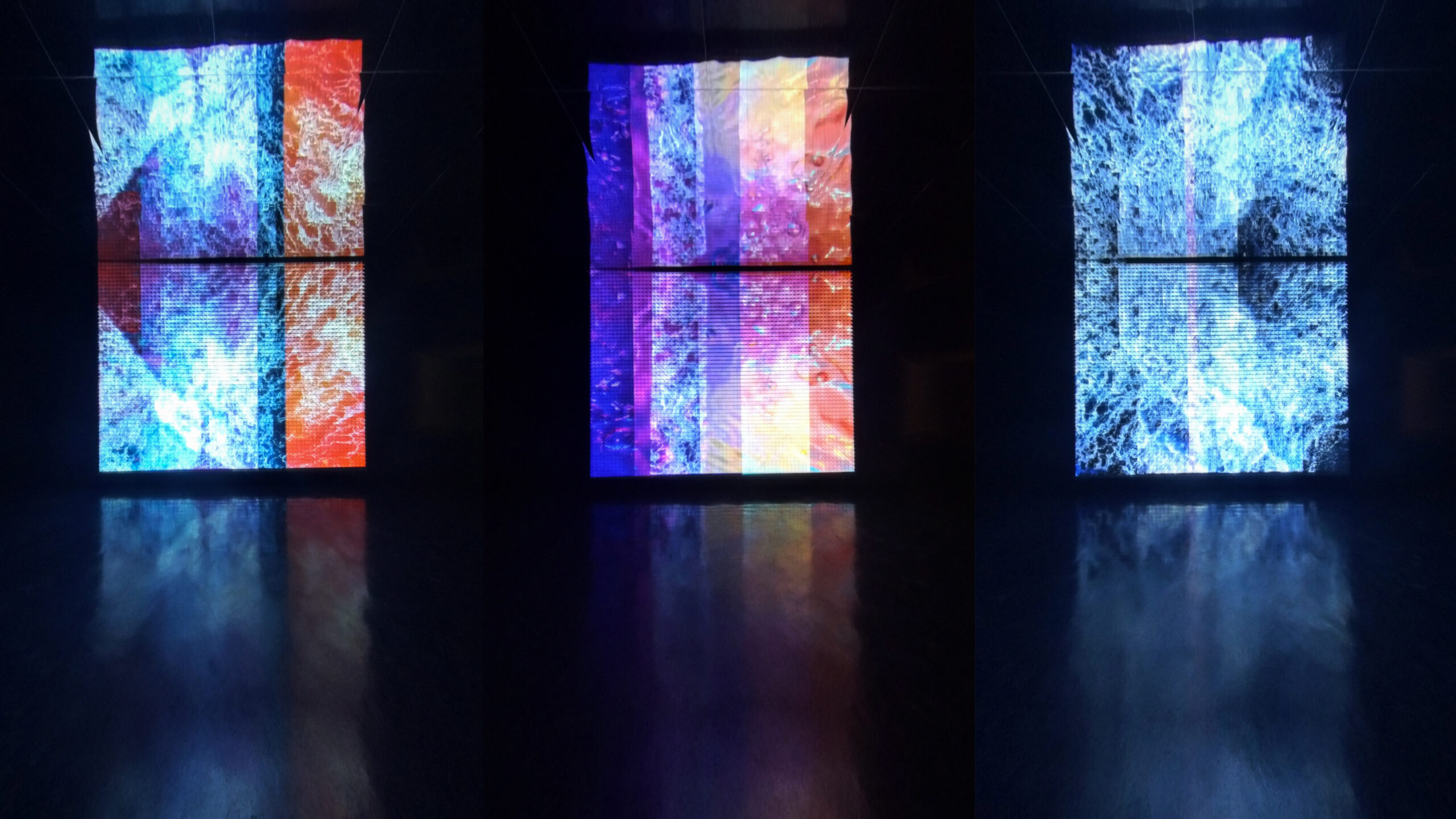 Hiroto Yoshizoe StudioとUranographiaという二つのスタジオのコラボレーションで生み出された作品《PIXEL DREAM》は、マス目の構造を使って、水をモチーフとした映像をピクセルの表現へと昇華します。この作品は、Hiroto Yoshizoeが学生時代に取り組み始め、LEXUS DESIGN AWARDにも輝いたPIXELシリーズの一つです。《PIXEL DREAM》では、幅5メートル、高さ4メートルにもなる巨大なスクリーンが紙だけで作り上げられています。さらに、のりを使用せずに組み上げているため、展示終了後に素材を再利用できる仕組みになっています。