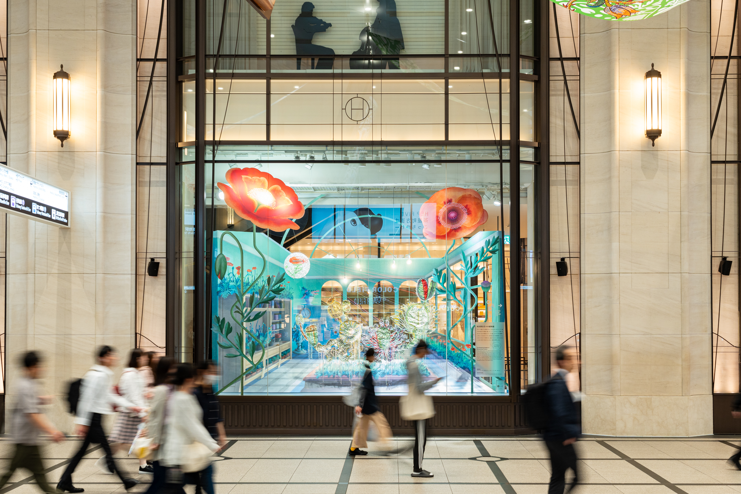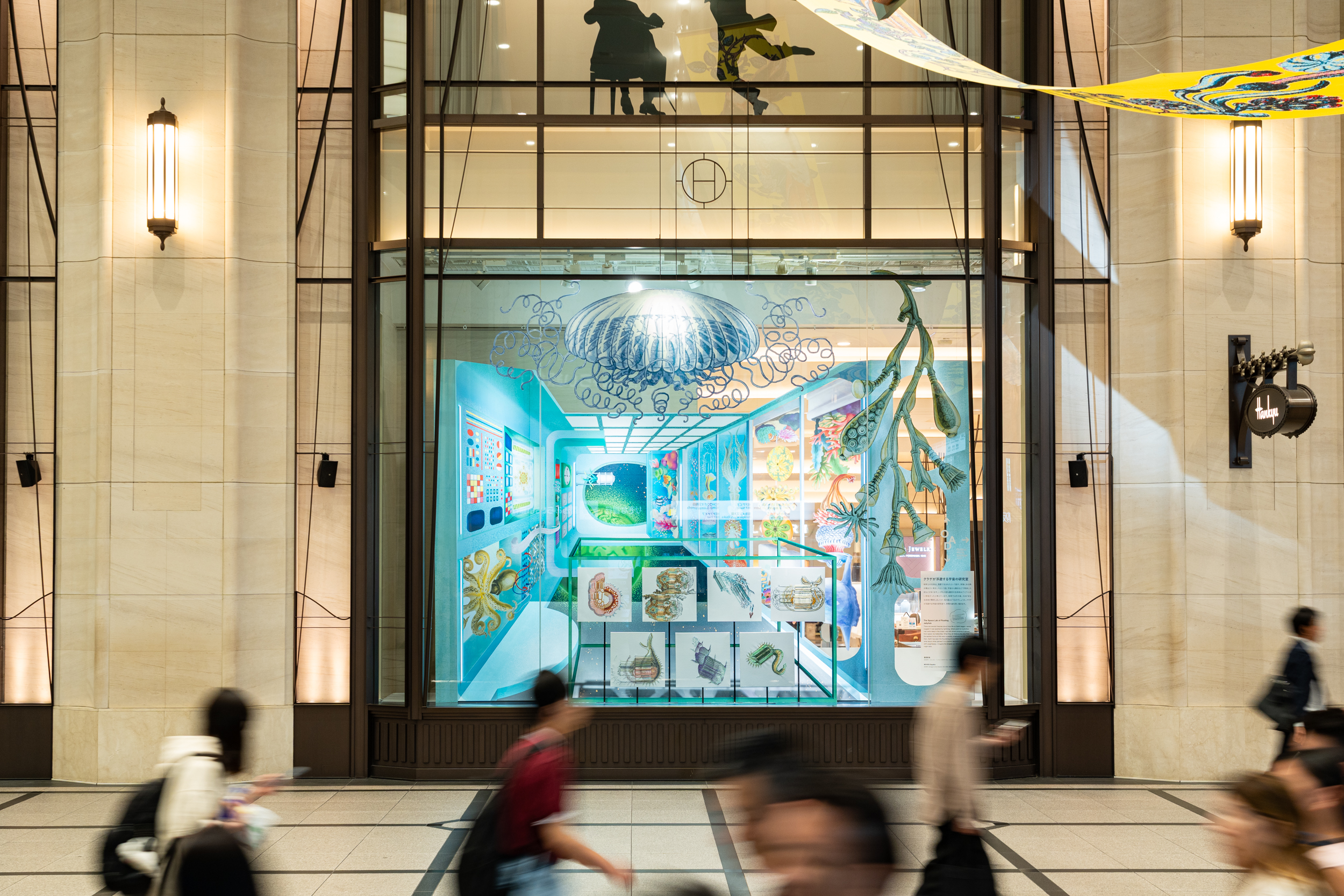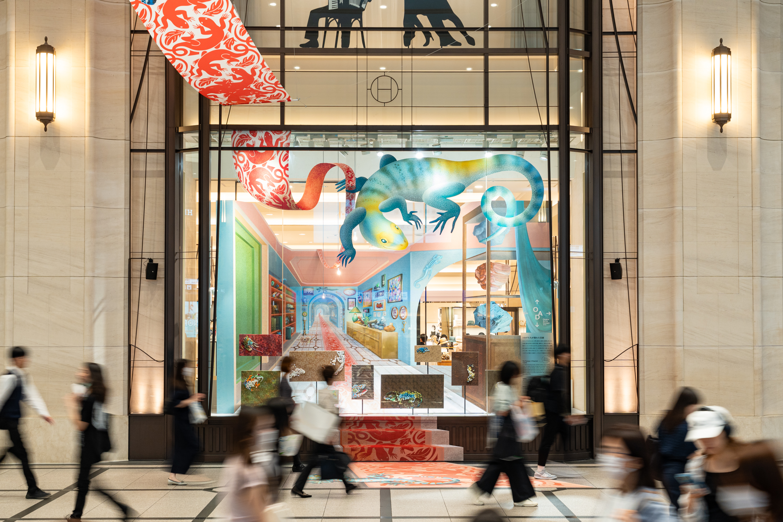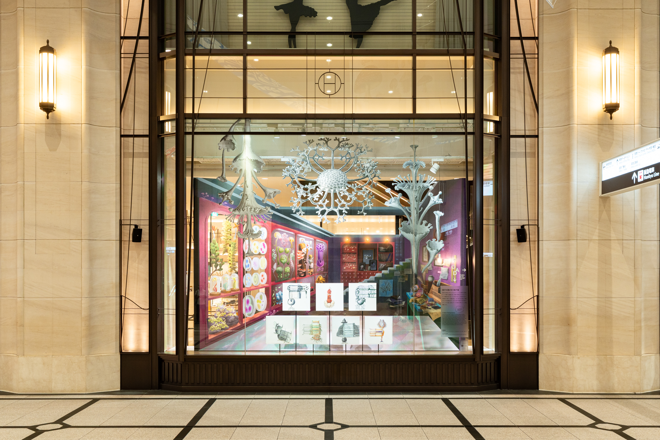 国内随一のショーウインドウとコンコースにて万博に合わせたテーマでインスタレーションを展開