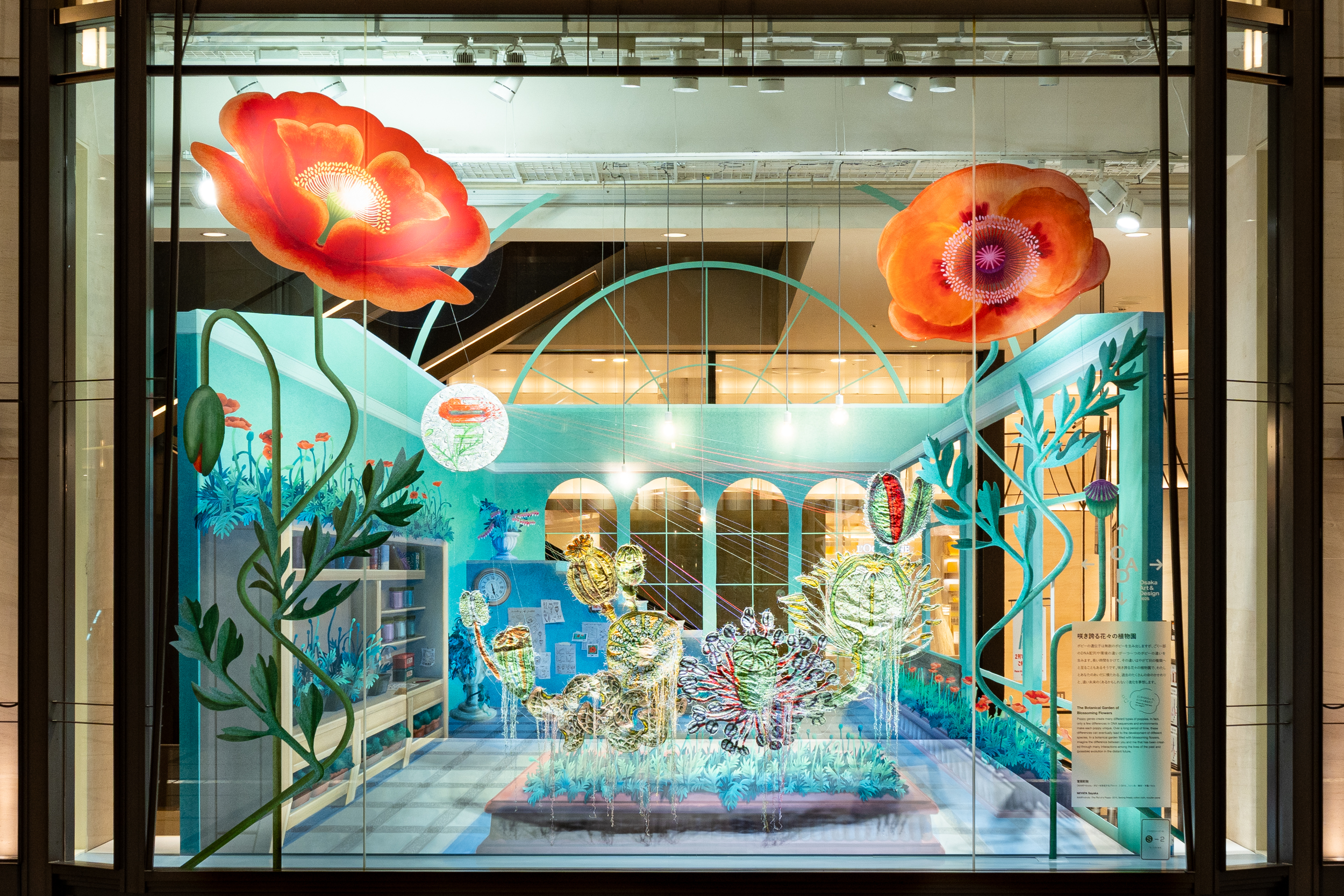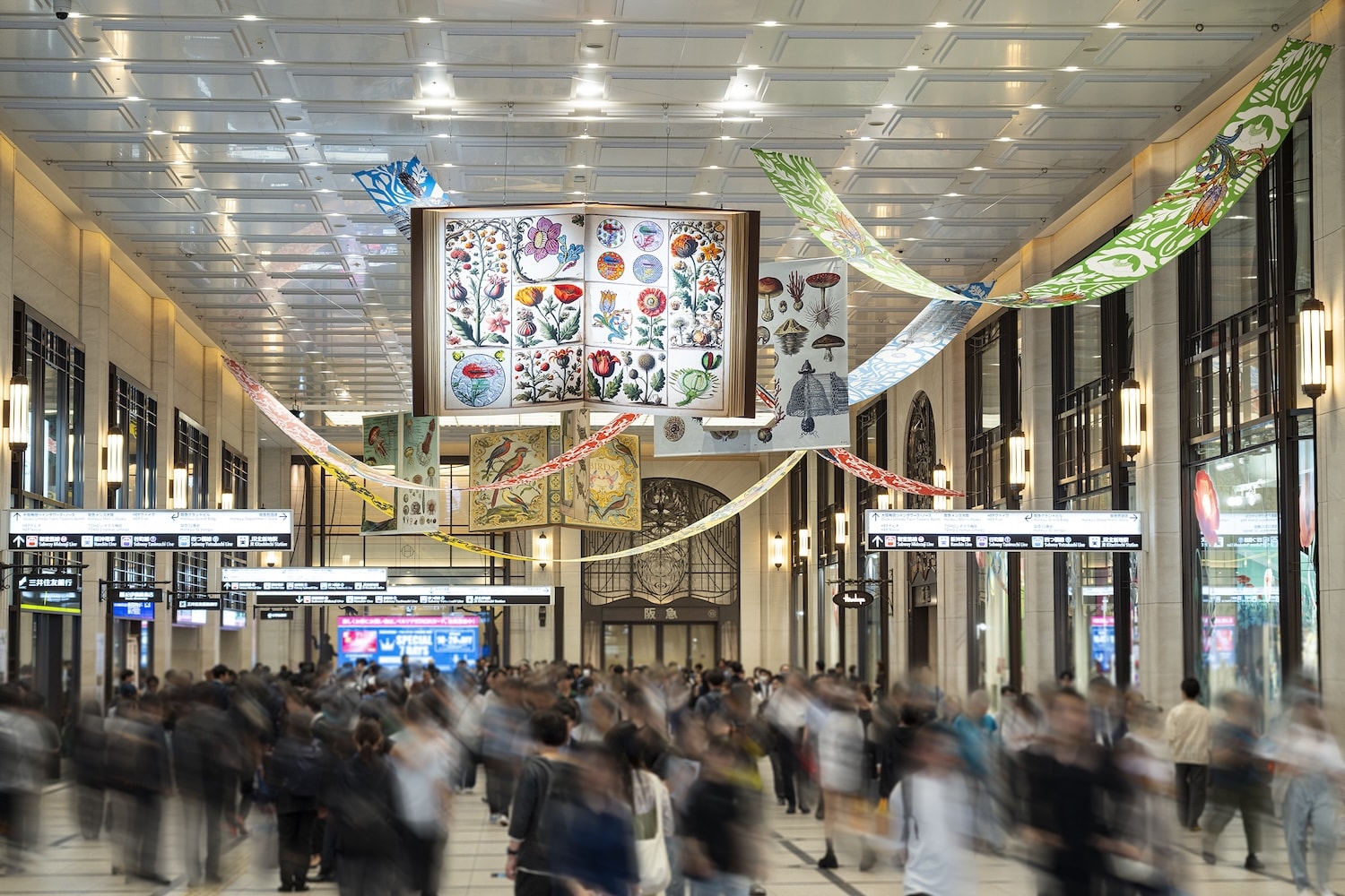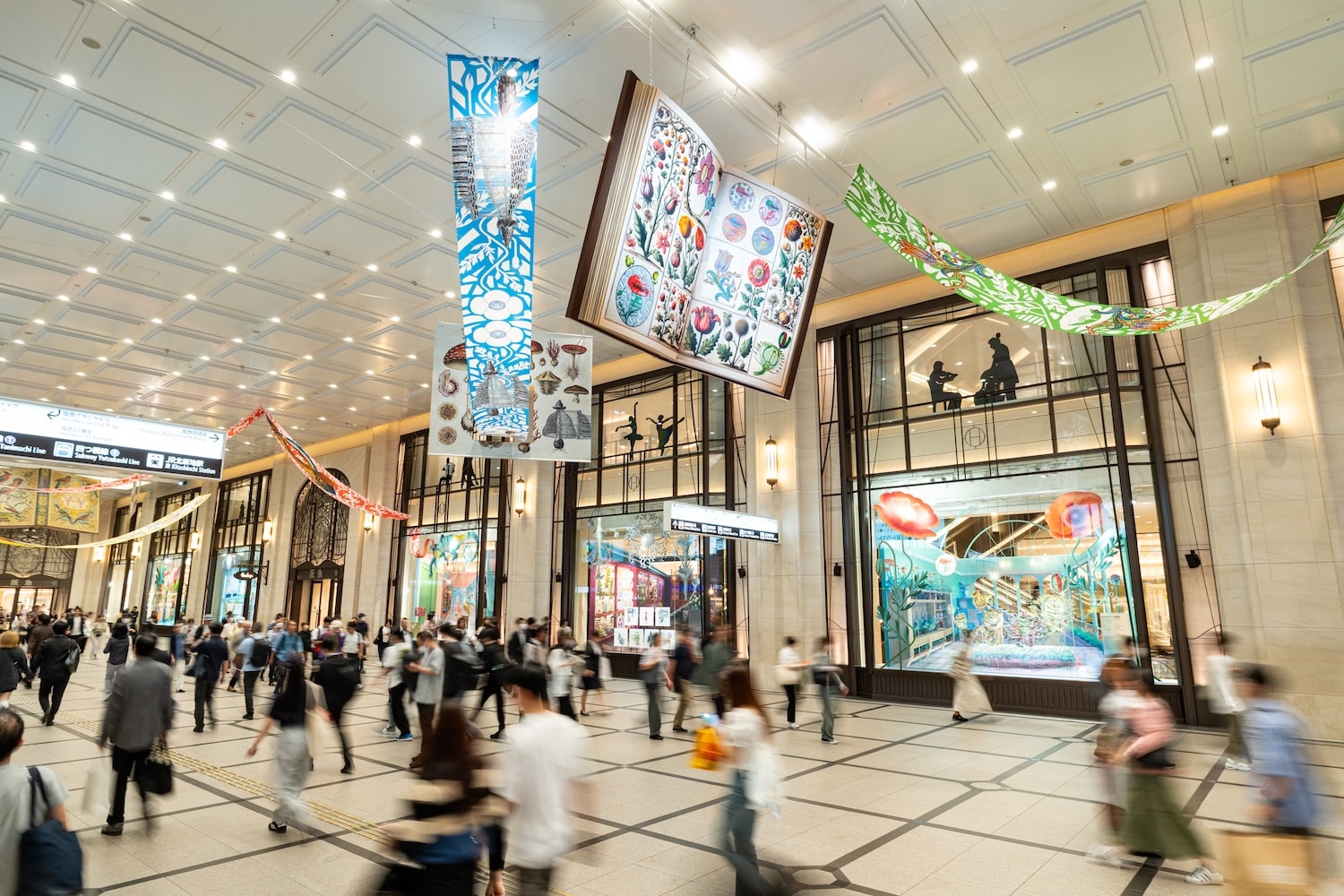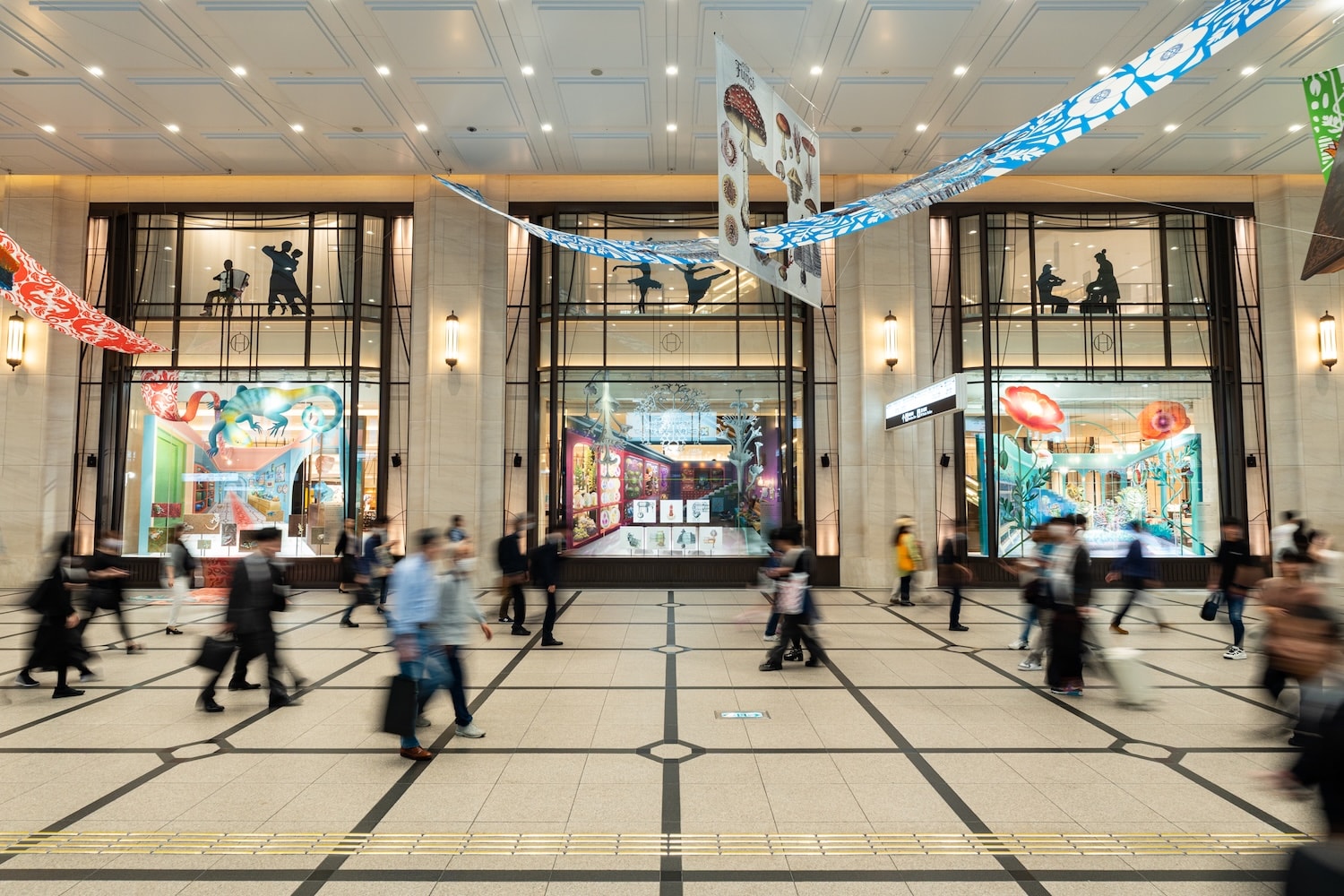 国内随一のショーウインドウとコンコースにて万博に合わせたテーマでインスタレーションを展開