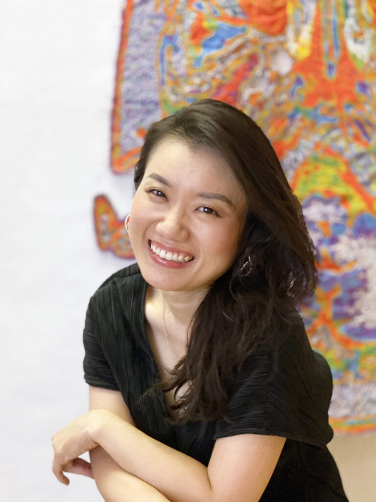 京都生まれ。2012年、京都造形芸術大学大学院 芸術表現専攻 修士課程 染織領域修了。大学で染織を専攻したことがきっかけで、染めた布に奥行きやボリュームを出すために手刺繍・ミシン刺繍によるオリジナルテクニックを使った制作を始める。ミシンという世の中に溢れた媒体に意図的にバグを起こすことで現れる糸の層「WARP」シリーズや、支持体の布を無くし、糸だけで構築させていく「Knots」シリーズなど、「エラー:失敗の行為によって新たな価値観が生まれる」を根本にしたテクニックと、生物の形態や、物事の発生や進化の在り方を呼応させた作品作りをしている、唯一無二の現代美術家として活躍している。主な展覧会に2024年「札幌国際芸術祭」(北海道立近代美術館)、2022年個展「裏腹のいとはよすが」(岐阜現代美術館)。
